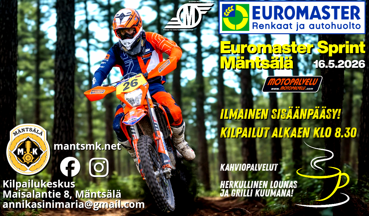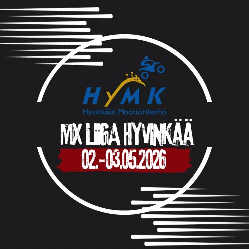 MX-liigakilpailu 2.-3.5.2026 Hyvinkäällä Lauantaina kilpailuluokat kansallinen MX65 ja MX85, sekä TOP250. Sunnuntaina kansalline...