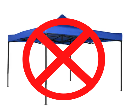 Kovan tuulen vuoksi varikkotelttojen pystytys kielletty!