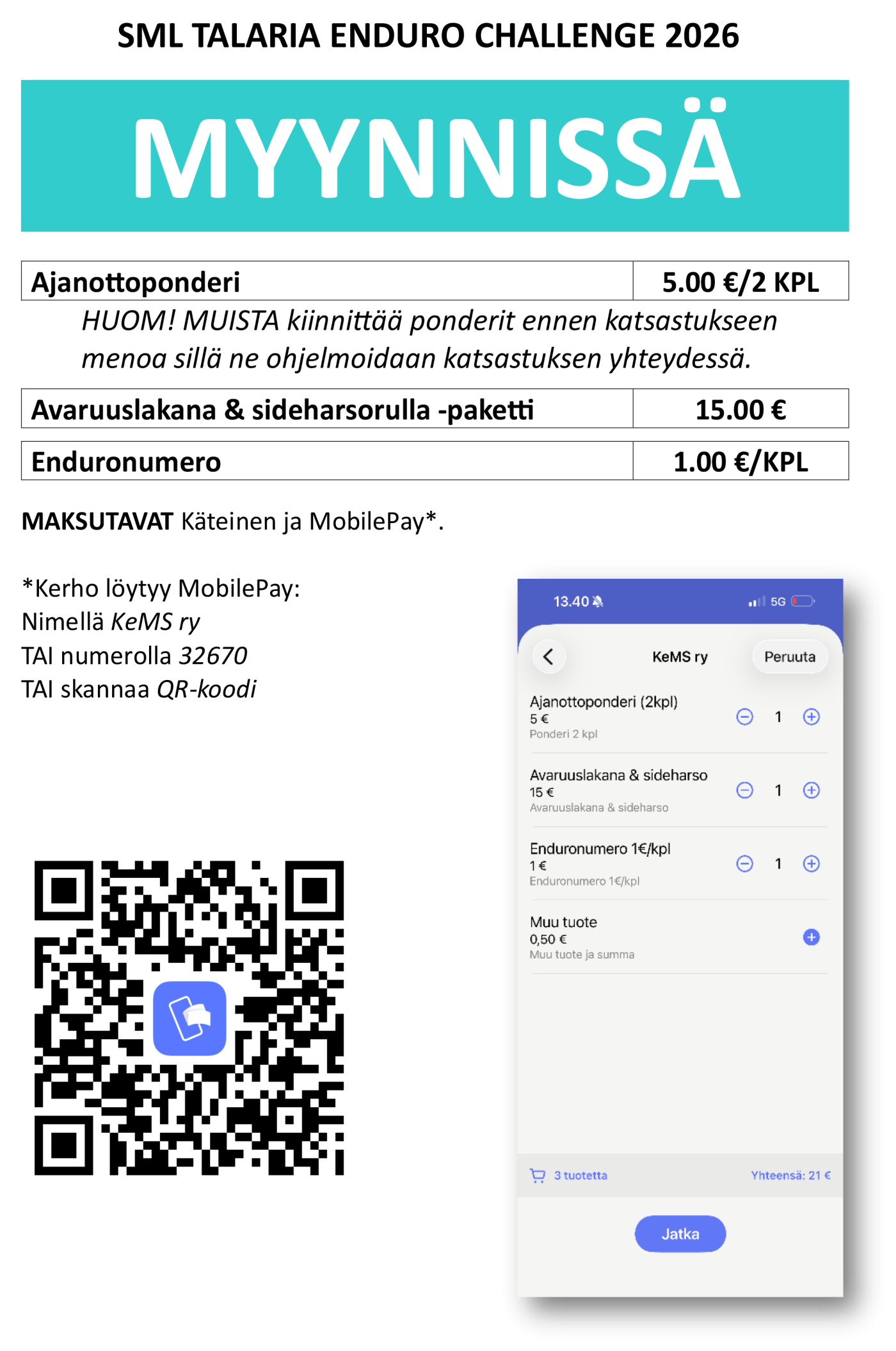 💳 Maksutavat: käteinen & kortti