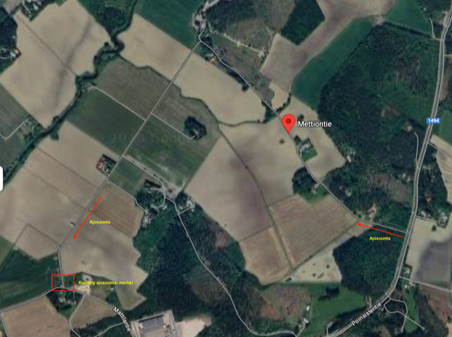 Maastokokeen 3 lähtöön mentäesssä olevalla Mettiöntiellä liikenne on yksisuuntainen. Se ajetaan Pornaistentieltä Mattilantielle päin. Liitteissä kartta.